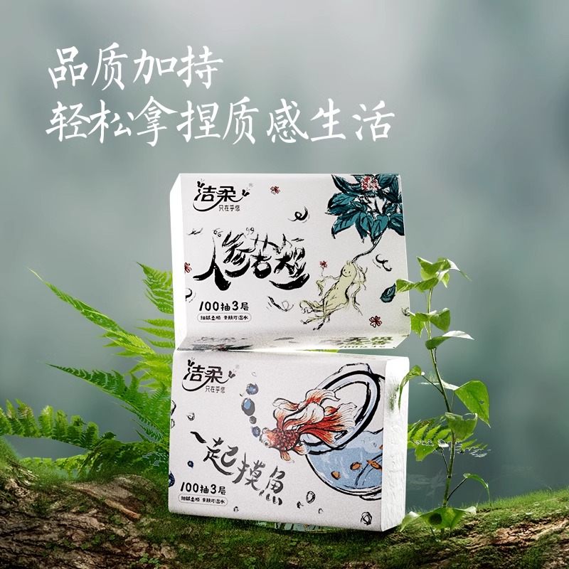 洁柔乌龙抽纸100抽3层实惠装家用有香卫生纸餐巾纸可湿两用香味