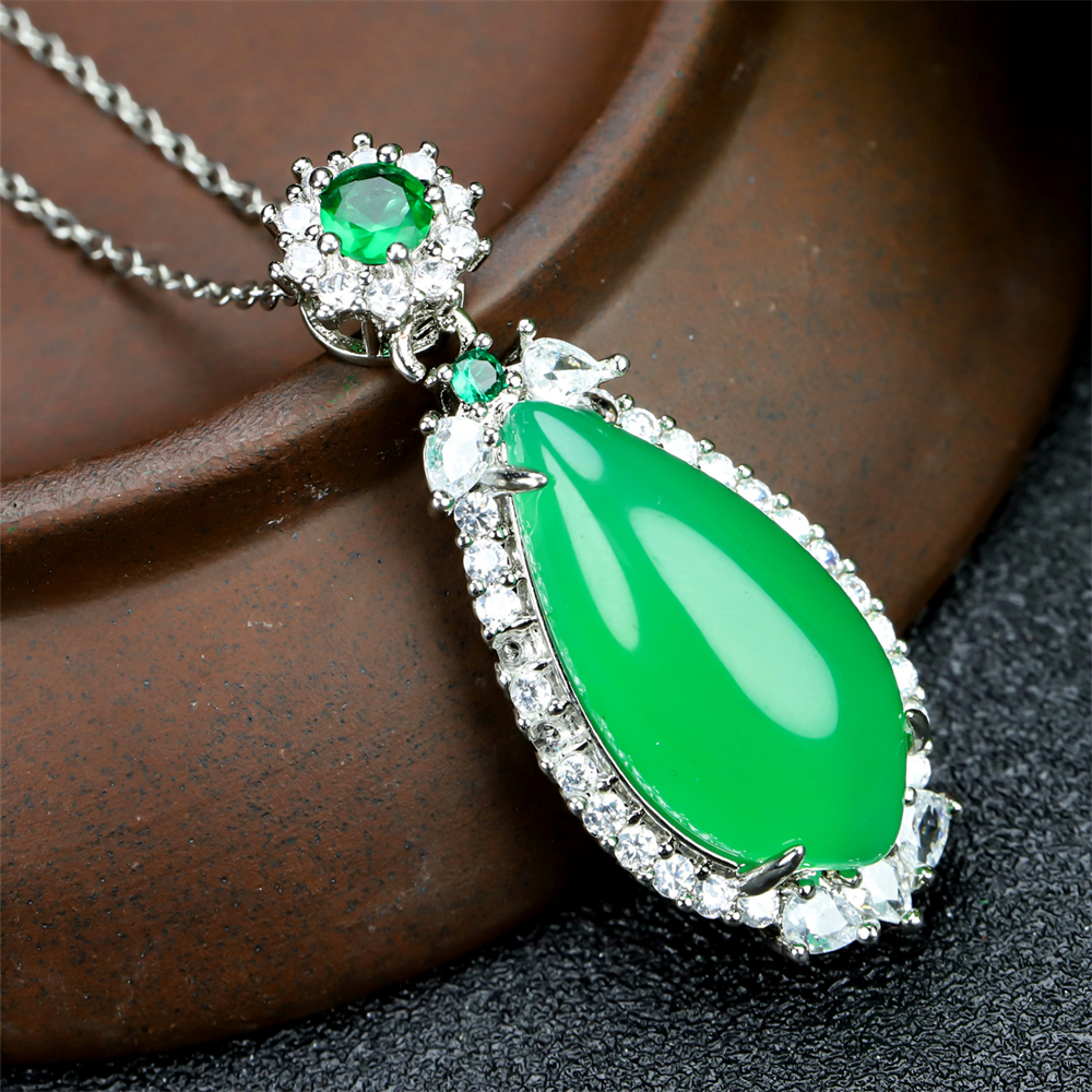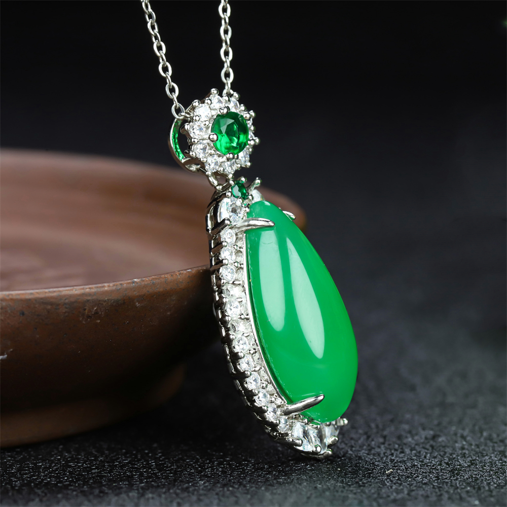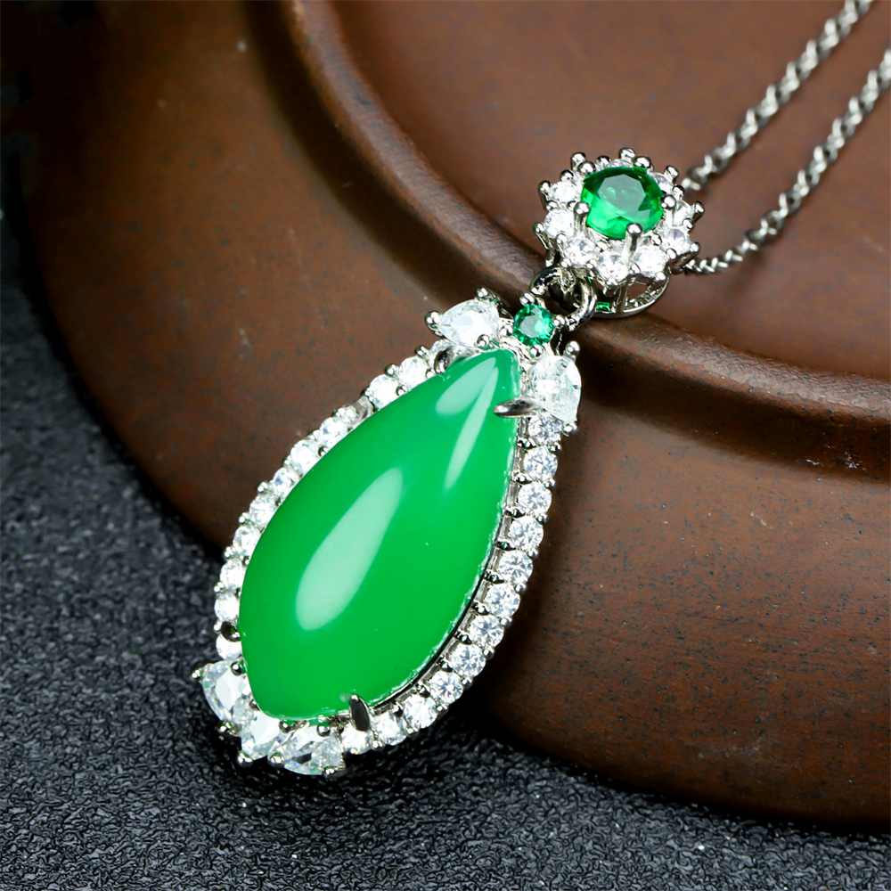 送证书冰种玉髓绿玛瑙吊坠翡翠色帝王绿聚财水滴项链挂坠玉石吊坠