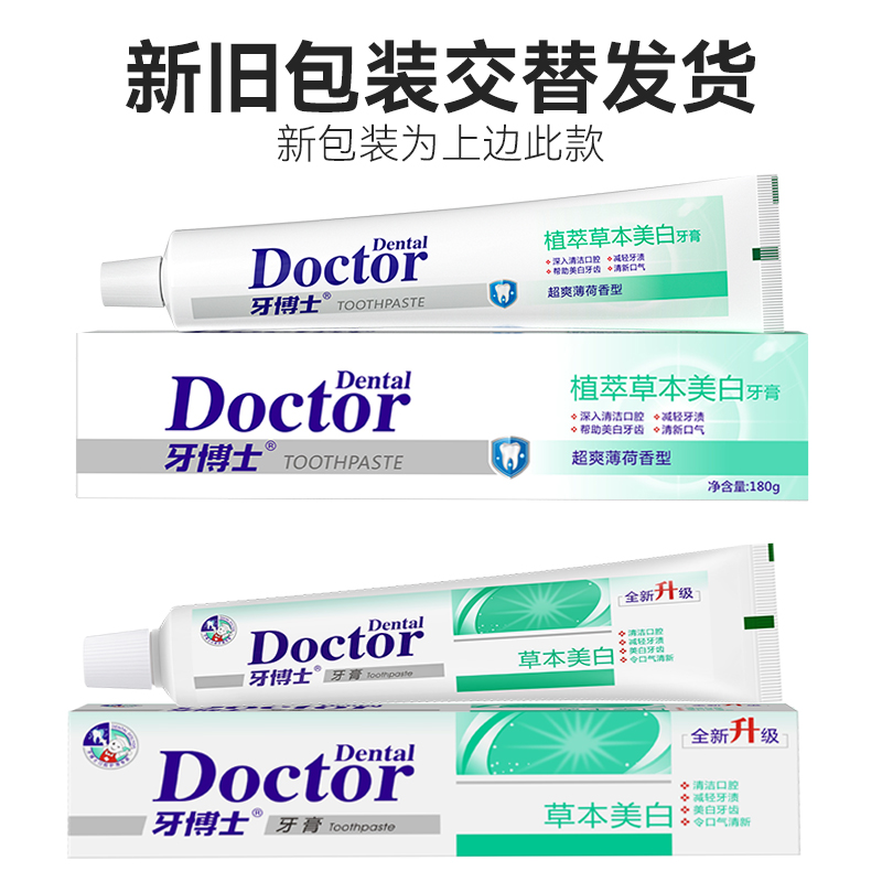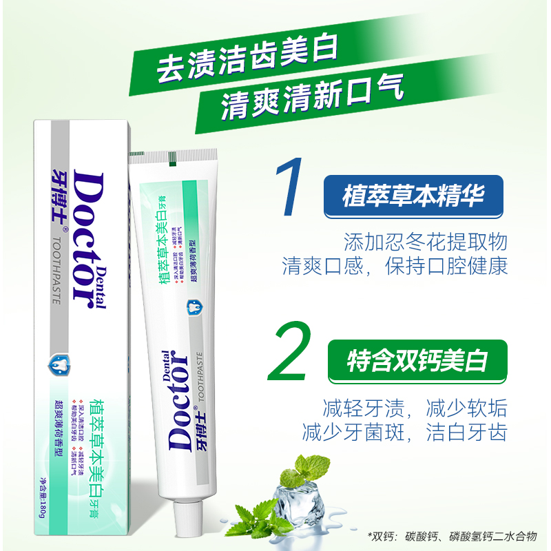 牙博士草本美白牙膏植萃精华去渍护龈清火洁齿大容量薄荷不含氟