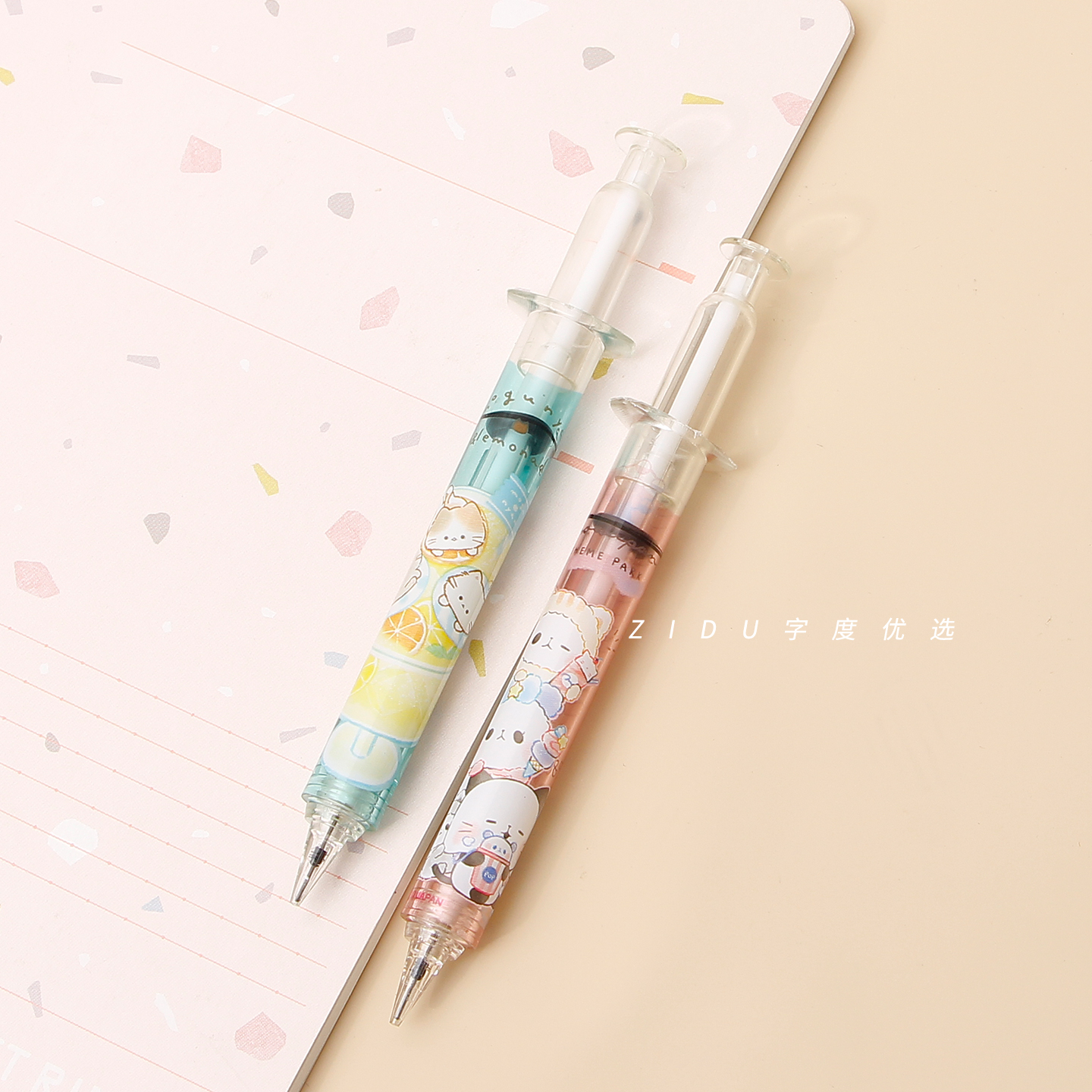 日本进口KAMIO自动铅笔渐变针管型创意ins熊猫卡通注射器半透明