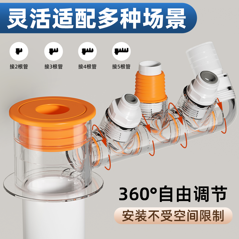 厨房下水管三头通排水道接口对接器多功能水槽专用三通防臭二合一