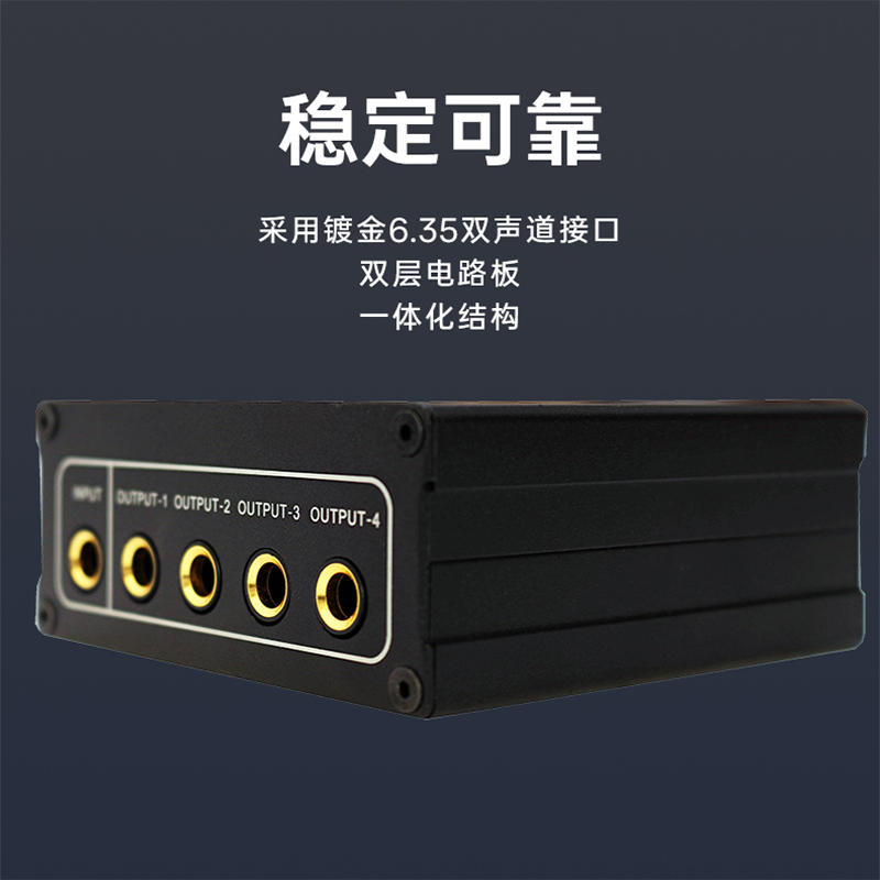 1进4出话筒音频分配器采用6.35镀金接口全铝外壳舞台演出