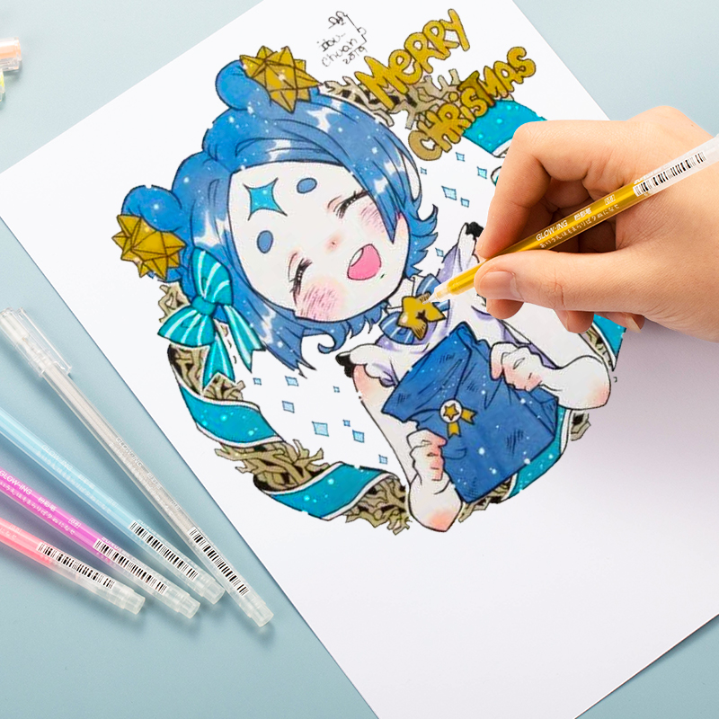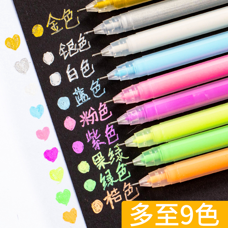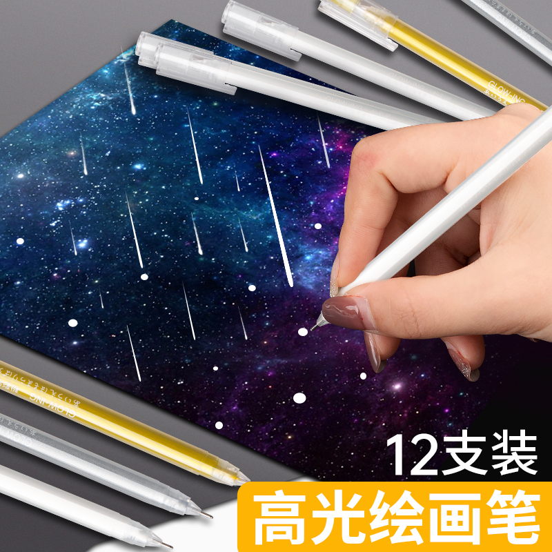 最炫水粉针管笔白色高光笔绘画笔学生用素描手绘高光提亮笔彩色勾线笔黑卡纸画白线描边金色油漆笔银色记号笔