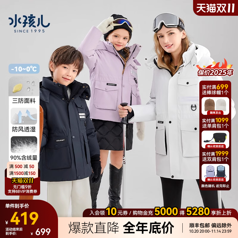 【三防透湿】水孩儿儿童羽绒服中长款秋冬装男女童羽绒衣鸭绒外套