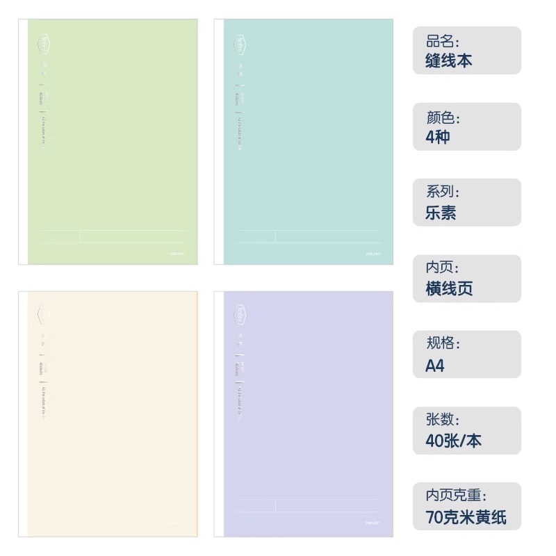 得力A4笔记本子B5学生课堂作业本高颜值加厚缝线软抄本a5大学生横线手账日记本练习本办公通用记事本子