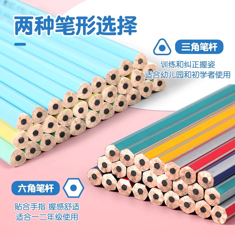 黑木铅笔三角正姿铅笔HB小学生专用一二年级学生铅笔2B幼儿园儿童初学练字学习文具无毒考试笔素描笔绘画笔