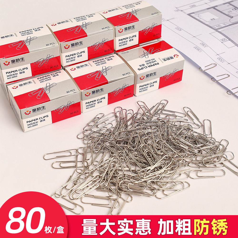 办公用品文具回形针3号金属回形针别曲针盒装80枚财务用金属别针
