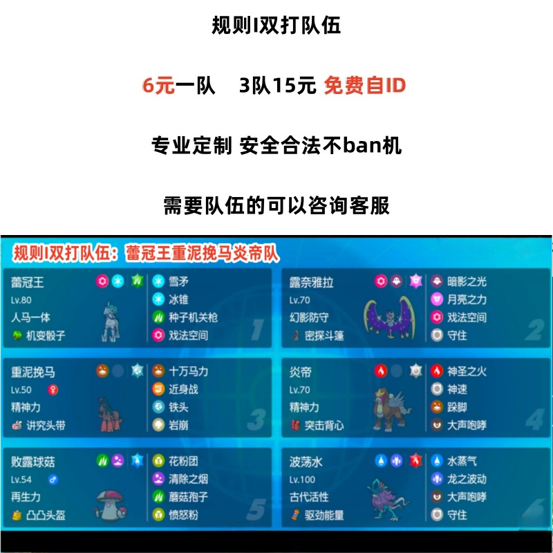 switch宝可梦朱紫规则I双打队伍蕾冠王重泥挽马炎帝队 6元一队