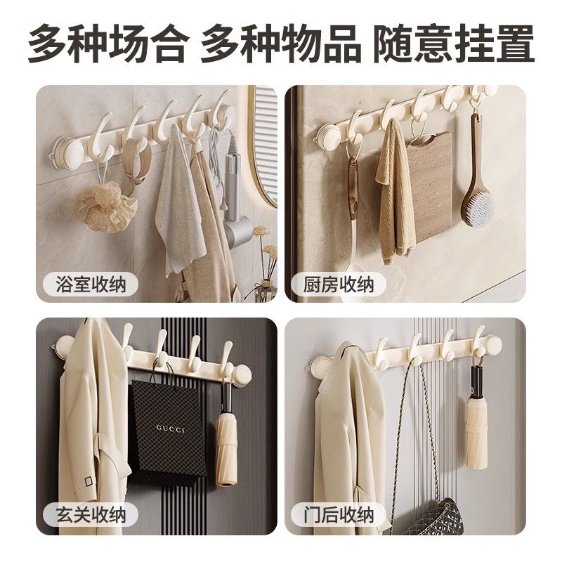 吸盘挂钩免打孔强力粘钩浴室壁挂门后挂衣架置物架排钩承重玄关