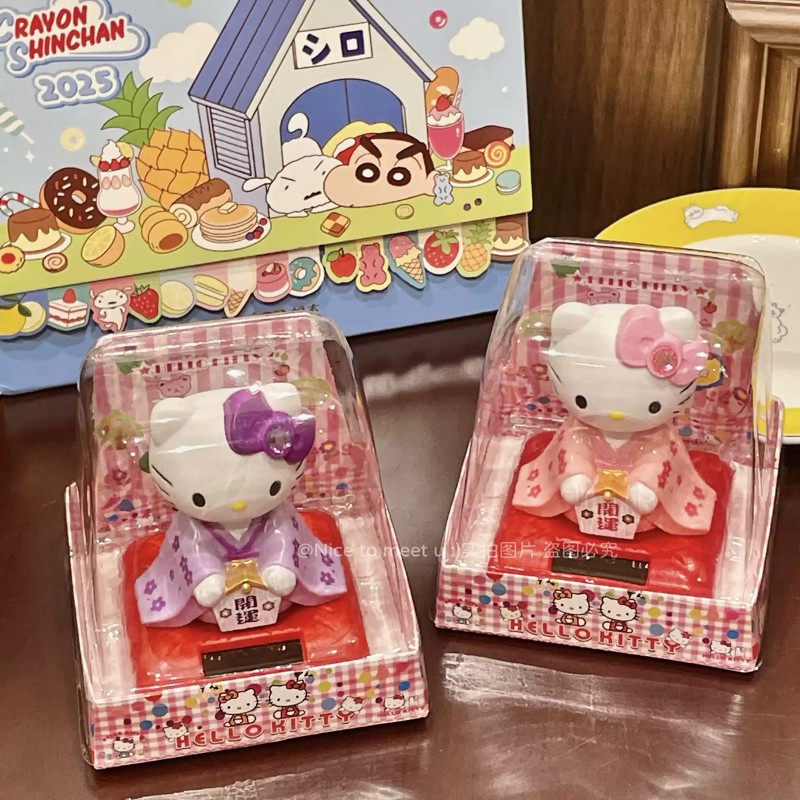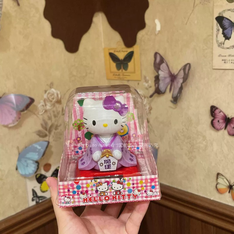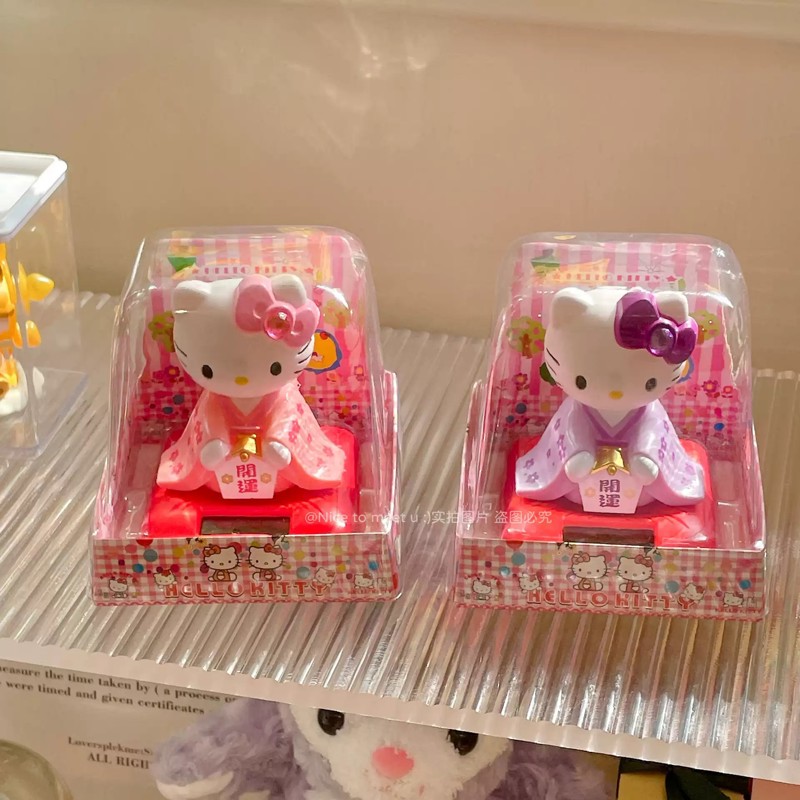 复古日系可爱童趣经典和服KT猫太阳能摇头公仔汽车摆件装饰品礼物