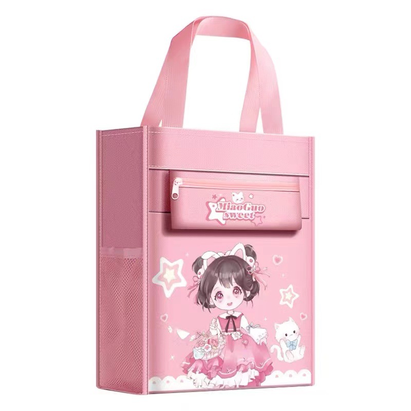 补习手提袋女小学生拎书袋大容量高颜值补习班书包女孩男孩儿童试防水防尘初中生学习帆布包补课包收纳课本