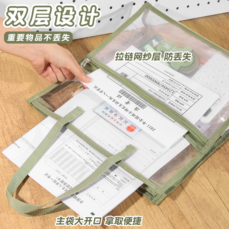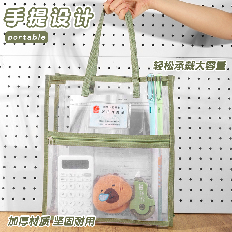 小学生透明补习袋上课收纳课本专用大容量手提袋网纱可入考场文件袋补课袋加厚包边资料收纳袋拉链式档案袋