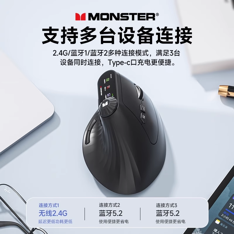 魔声M2MAX人体工学垂直鼠标无线蓝牙游戏电脑笔记本办公轻静音