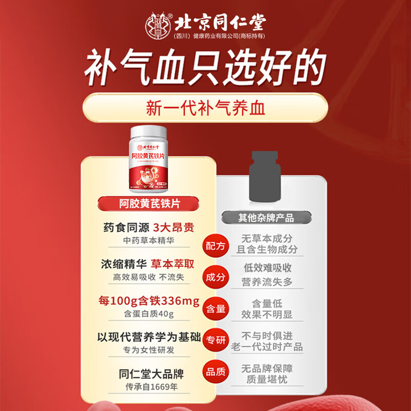 北京同仁堂当归黄芪铁片补铁补血养气月经不调活血通经贫血男女XT