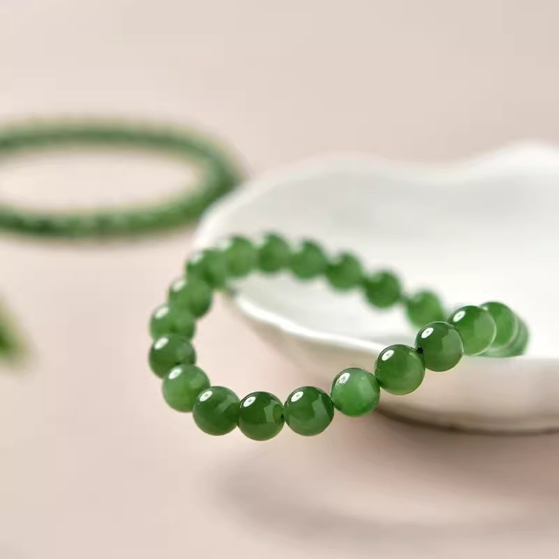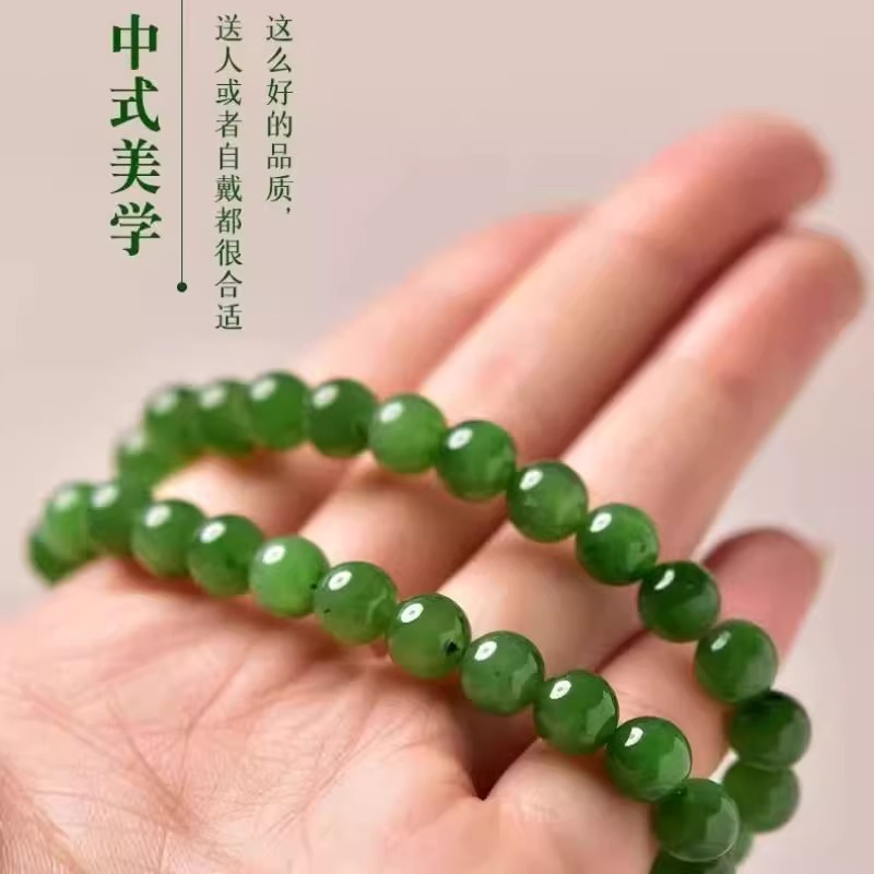新中式国风天然和田玉手链女菠菜绿碧玉简约手串玉石素圈气质串珠