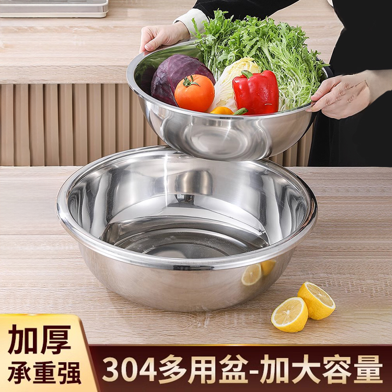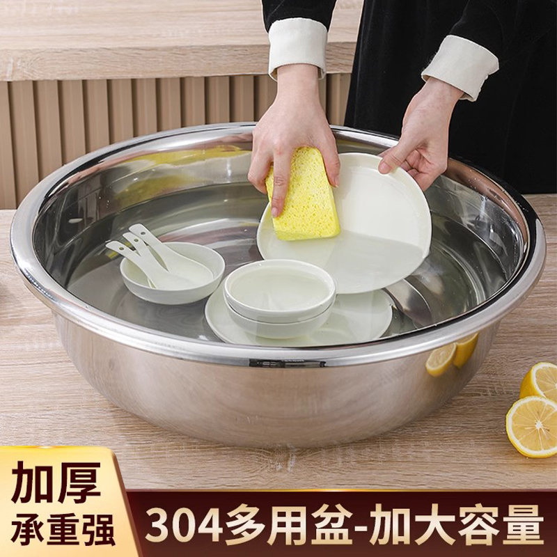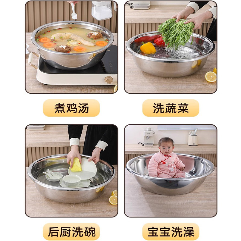 特厚304不锈钢盆商用特大盆洗菜盆汤打蛋和面盆洗澡洗衣盆洗脸盆