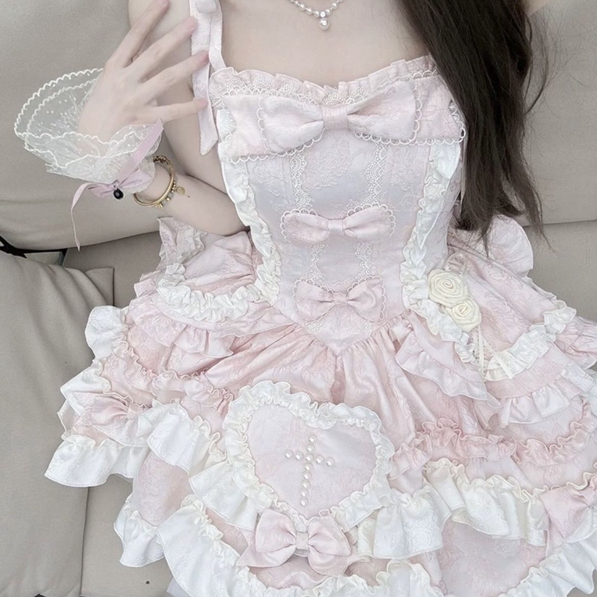 芙蝶之心 芙蝶结粉色原创洋装jsk日常轻lolita公主收腰连衣裙现货