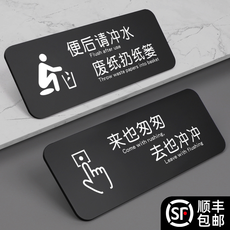 速发亚克力便后请冲水贴纸来也匆匆去也冲冲温馨洗手间标语卫生间