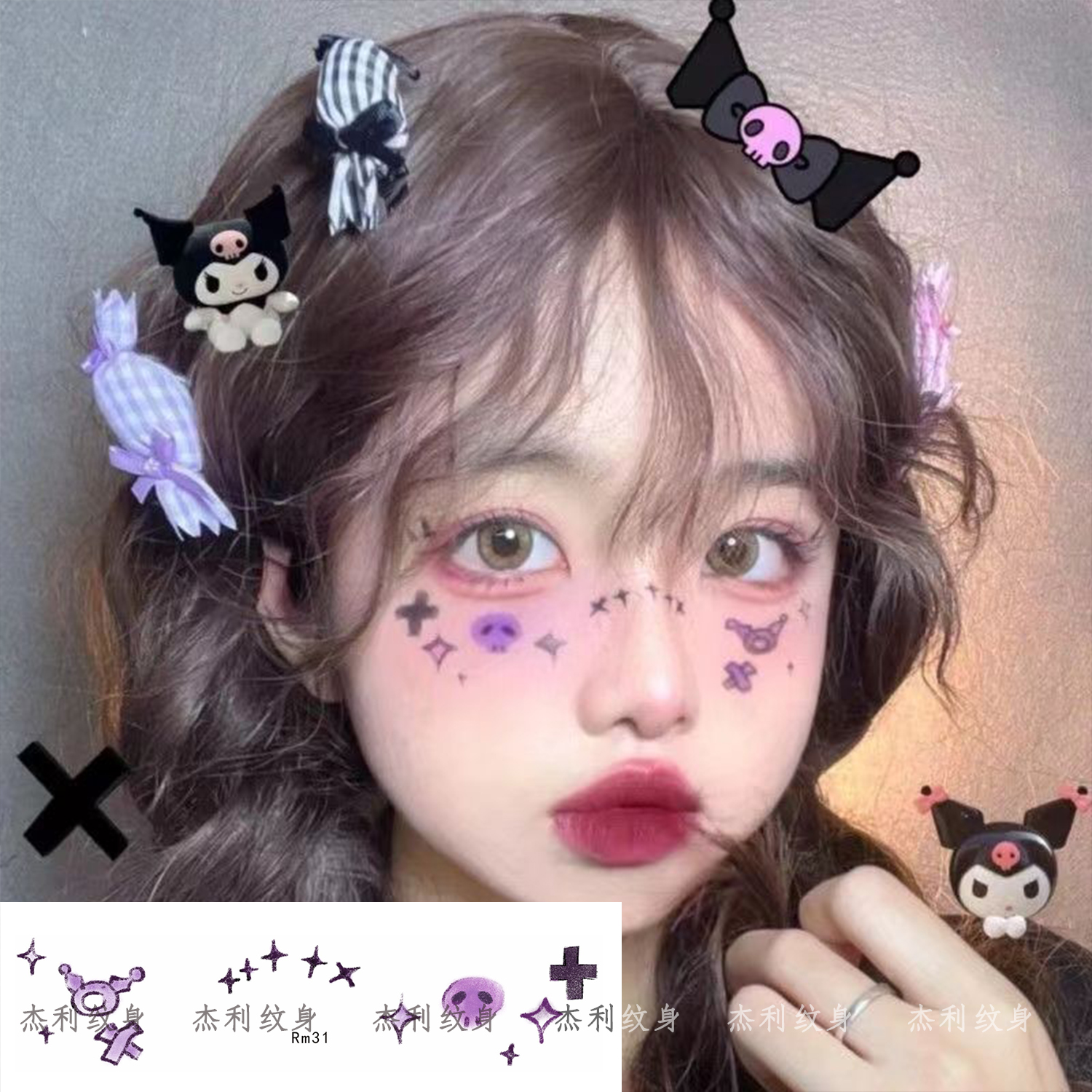 学生可洗装饰拉布布纹身贴防水卡通女生labubu可爱闪粉水印手臂贴