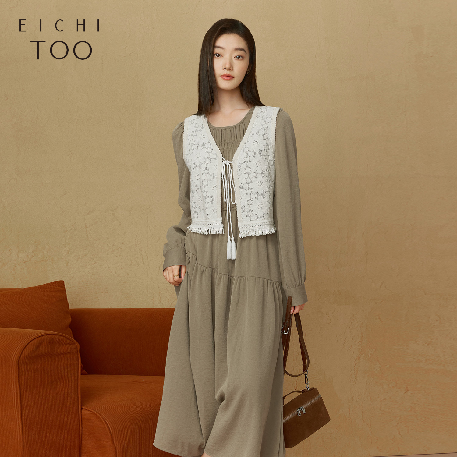爱居兔长袖连衣裙两件套女春秋新款马甲搭配气质套装裙