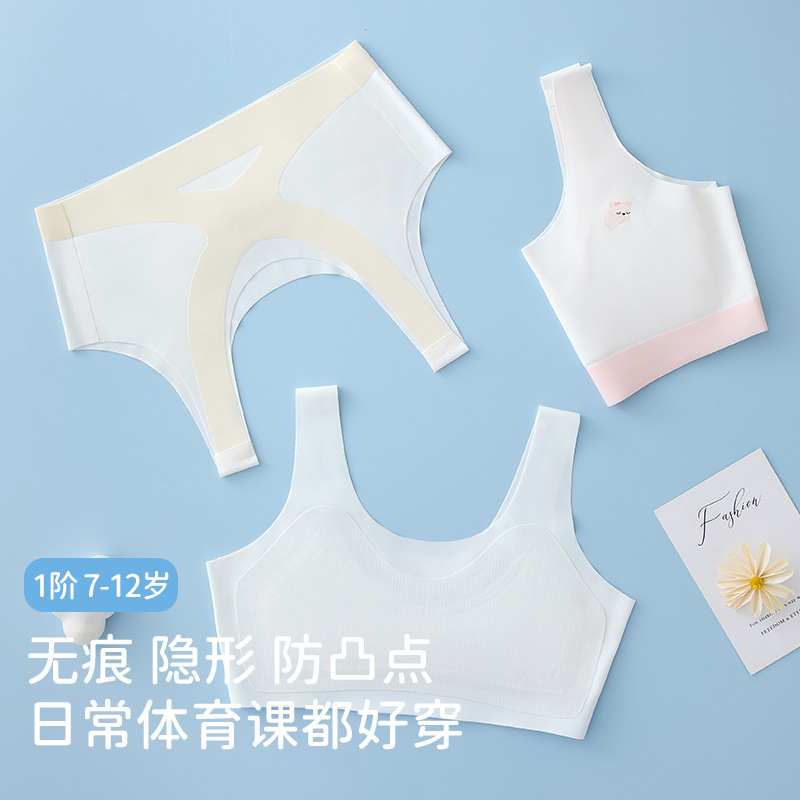 忆括少女粉底液隐形内衣青少年学生初中生发育期女童背心文胸薄款