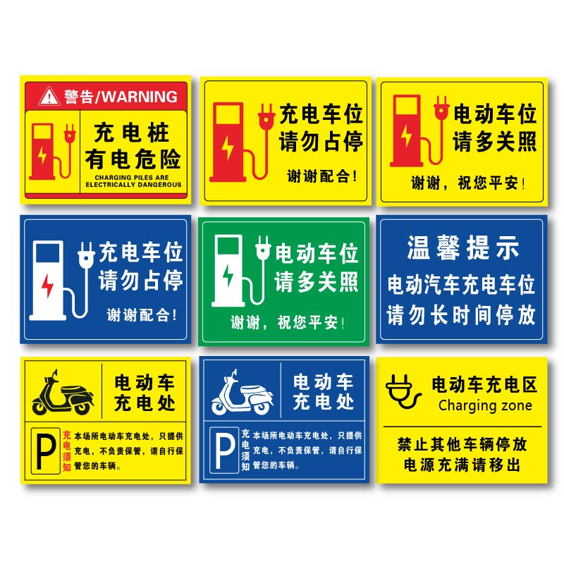 充电桩有电危险警示牌小区停车场充电车位请勿占用停占提示牌贴纸充电桩警示牌私家车位请勿停车标志标语定制