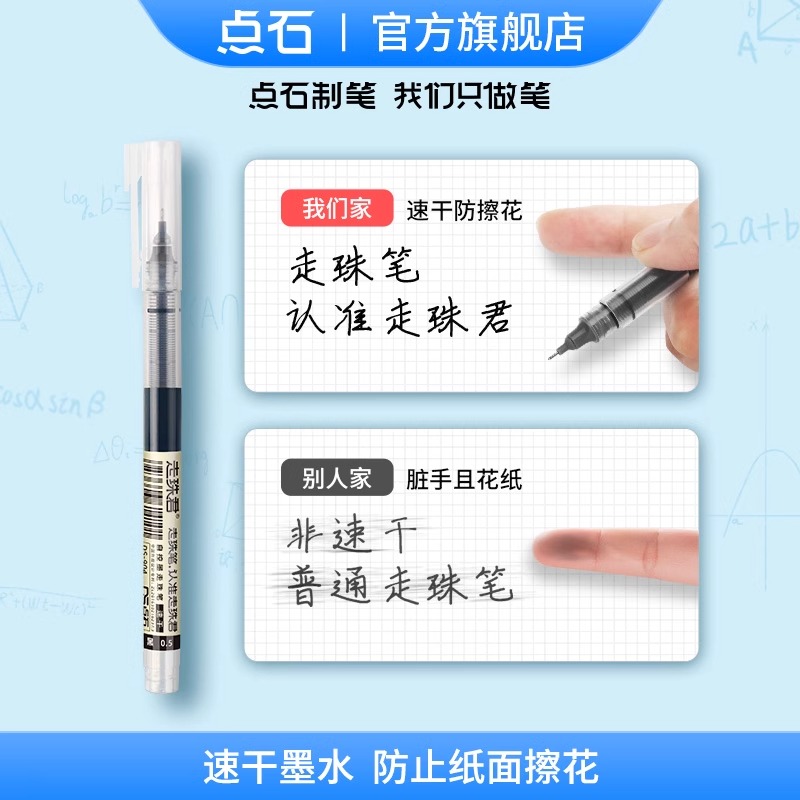 点石直液式走珠君笔黑色中性笔速干圆珠笔DS-904考试用学生用红笔蓝色碳素笔高颜值签字笔水性笔刷题笔大容量