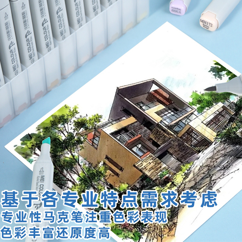 美卡勒三代专业软头马克笔美术生专用酒精油性速干可加墨120色大师套装动漫考研景观设计专业专用手绘彩笔