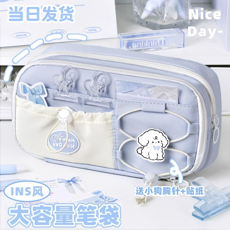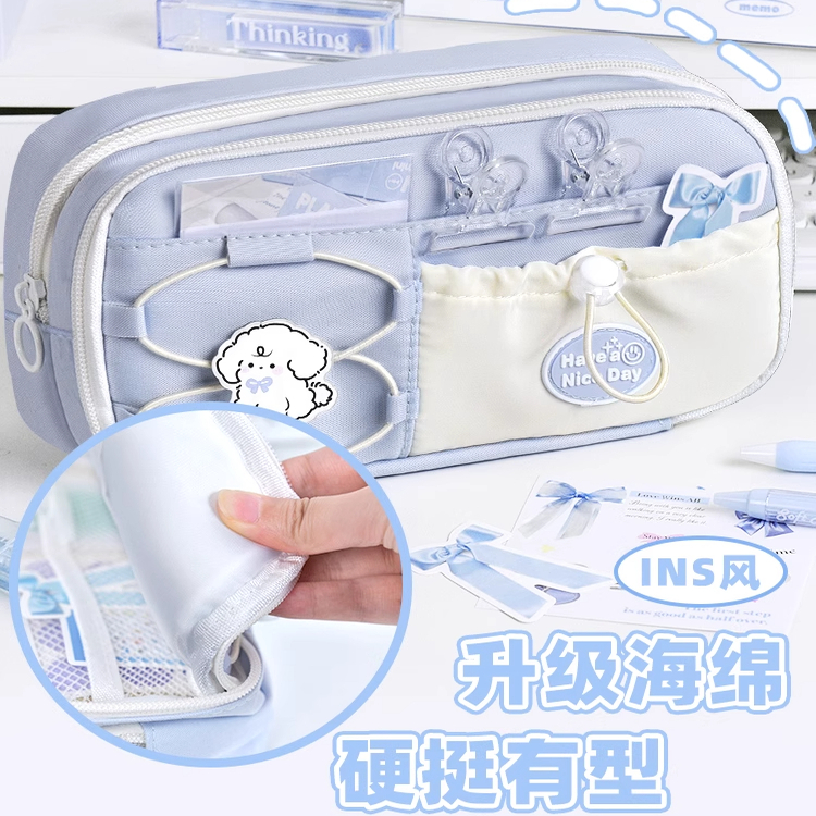 海盐奶蓝!笔袋大容量女孩款女童文具袋高颜值ins风小学生儿童铅笔盒超火初中生简约高中小众2025新款不撞款