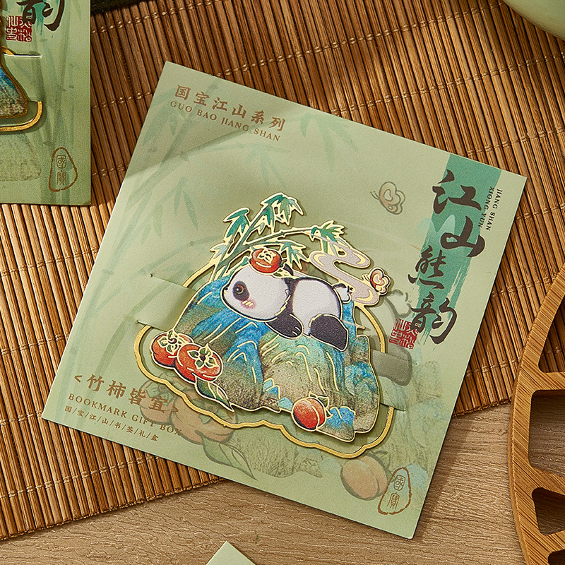 卡通水墨熊猫金属书签礼盒古典中国风文创镂空书签精致小学生奖励故宫文创纪念品高颜值礼品教师节送礼物文具