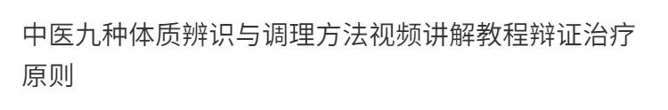 中医九种体质辨识与调理方法视频讲解教程辩证治疗原则
