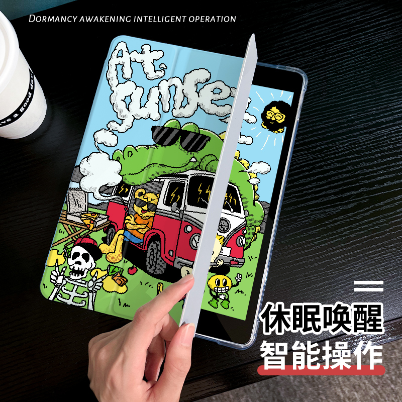落日海摊适用于ipad10保护套air6/4/3平板壳2025苹果第九代13英寸10代mini6三折硅胶ipadpro11/12.9寸笔槽5女