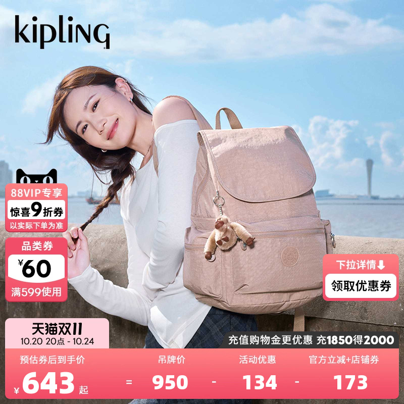 kipling男女款2025秋冬新款大容量轻便电脑双肩背包|EZRA系列