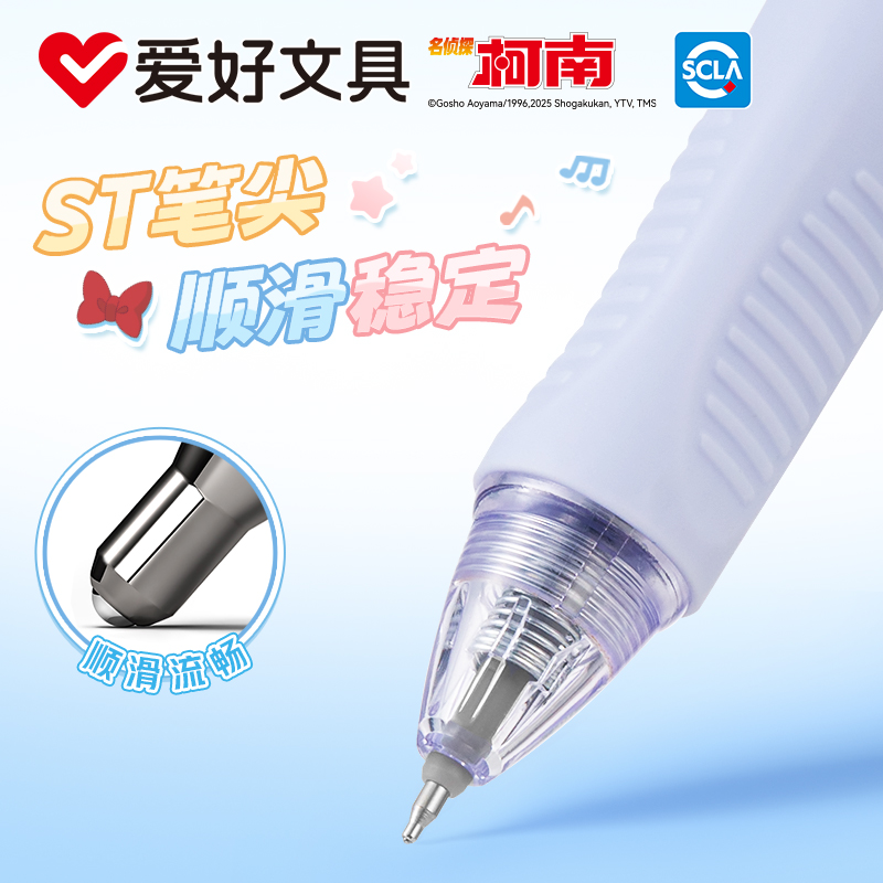 爱好名侦探柯南联名摩易擦中性笔热可擦笔三年级学生专用磨魔力按动式可擦水笔可爱卡通男女小学生黑色晶蓝色