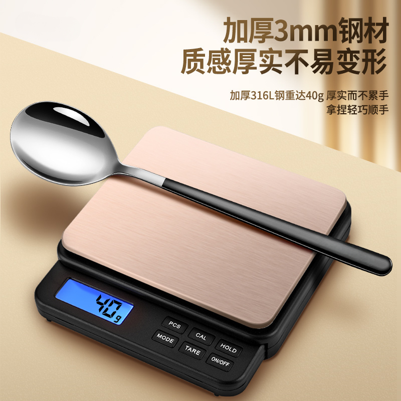 316L不锈钢勺子家用高颜值汤匙网红长柄儿童吃饭甜品西瓜成人调羹