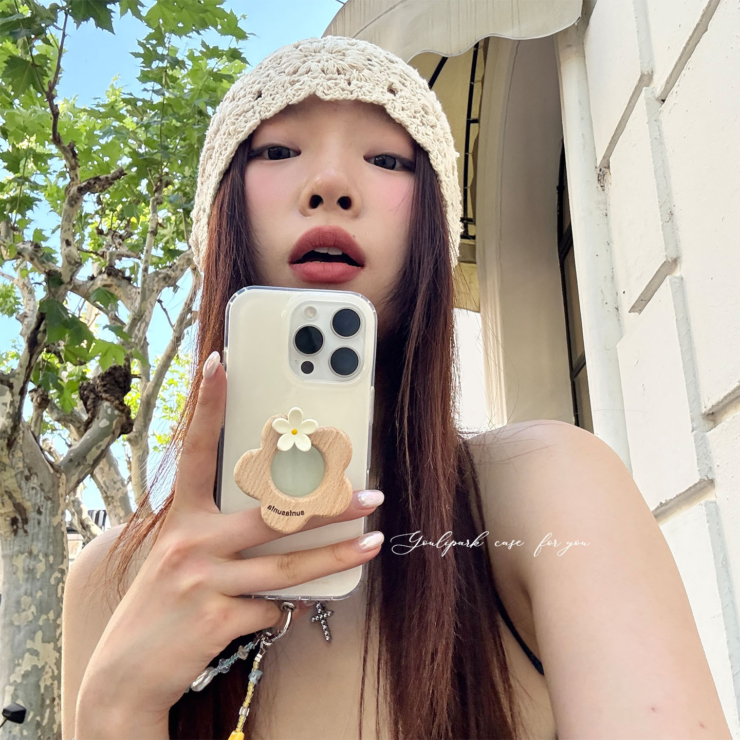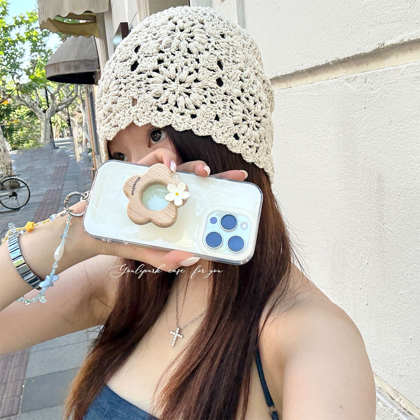 由里公园ins夏日度假风清新木质花朵支架15适用16pro苹果16ProMax手机壳iPhone16全包14新款14Promax保护套女