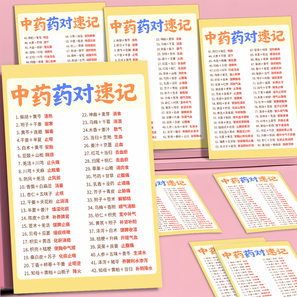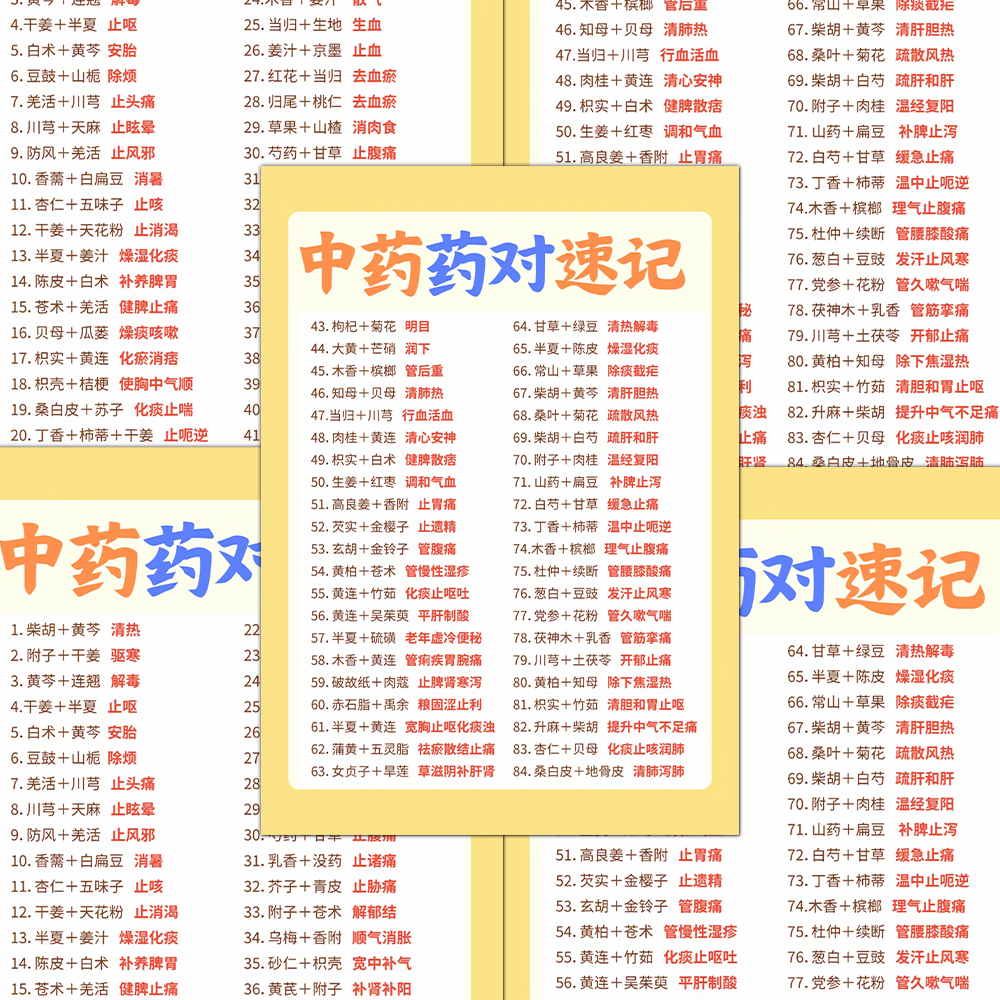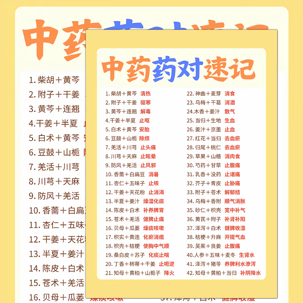 中药药对速记小卡】中药配伍药理知识口诀药效功能作用知识点小卡