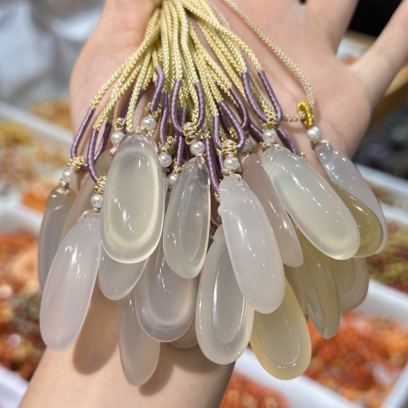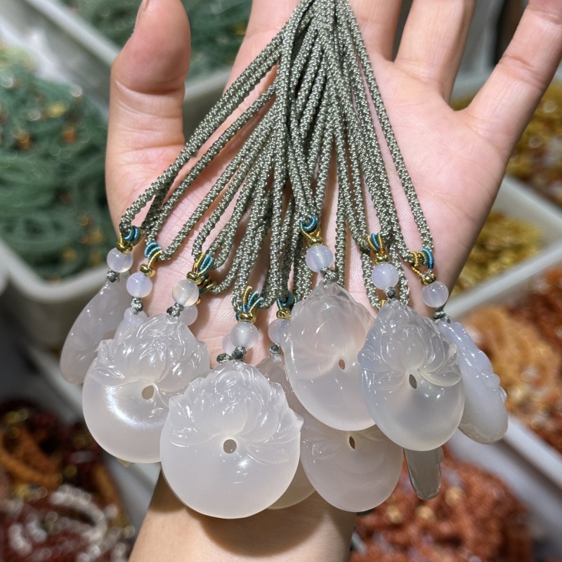 高冰种玉髓(玛瑙)福瓜吊坠冰透九尾狐一口糖平安扣新中式项链