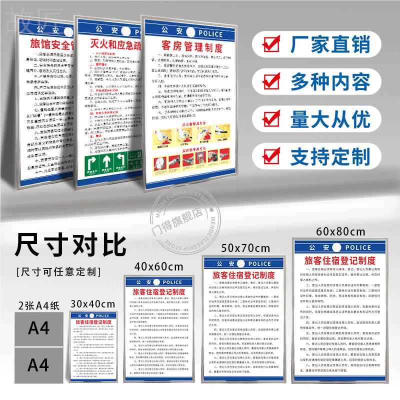 旅馆宾馆酒店消防安全管理制度牌上墙贴住宿登记安全保卫消防客房卫生消毒应急预案未成年人入住五必须四警示