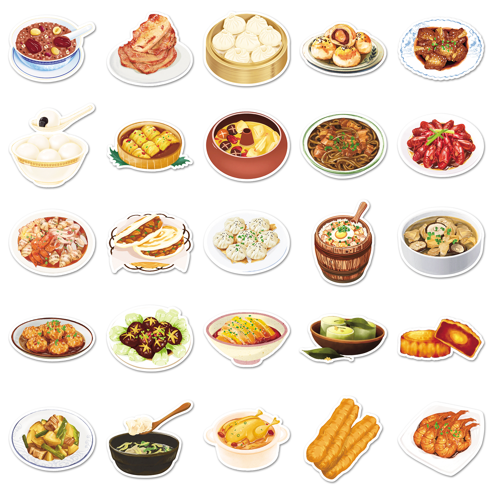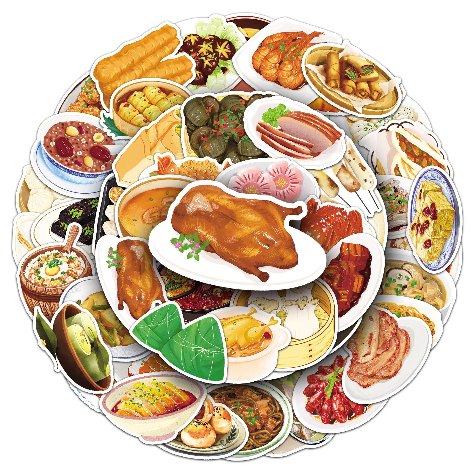 100张手绘中国传统美食贴纸中式料理小吃创意防水装饰厨房冰箱水杯文具手机滑板吉他旅行箱头盔平板电脑贴纸