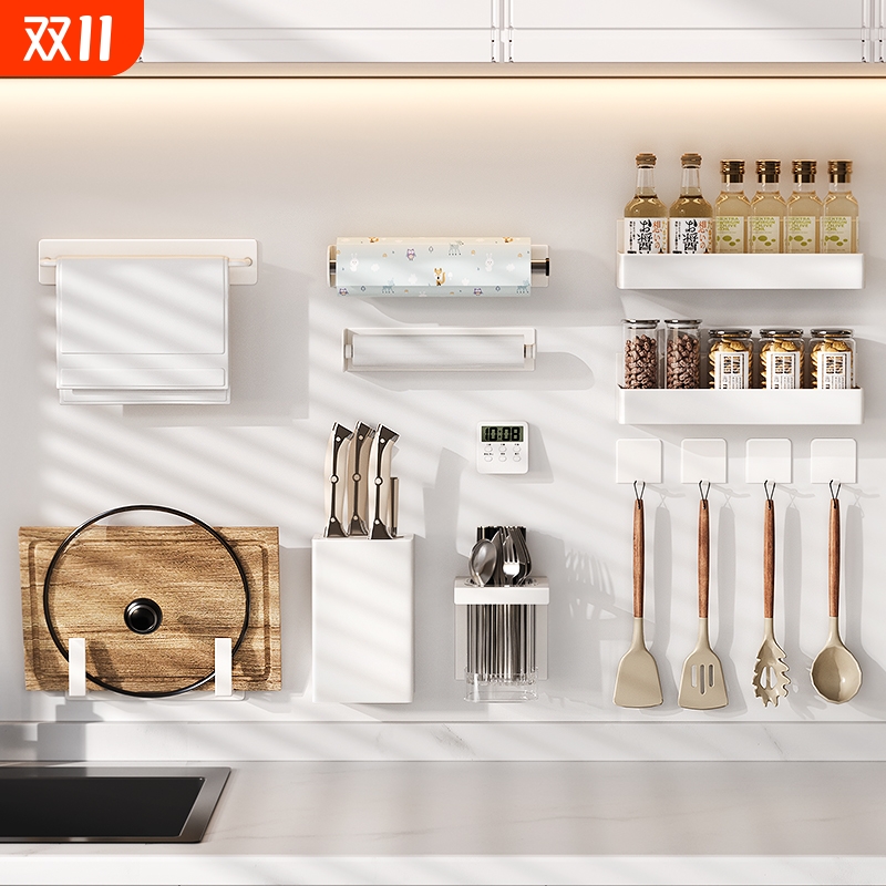 厨房引磁软布珐琅板平替磁吸置物架洞洞板墙面挂架刀架配件收纳架