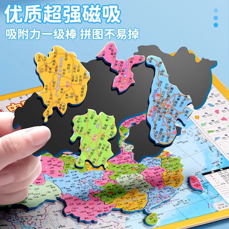 中国地图拼图磁力世界地图儿童地球仪3d立体拼图启蒙小学生初中生专用地理省级行政区划分玩具磁性2025新版