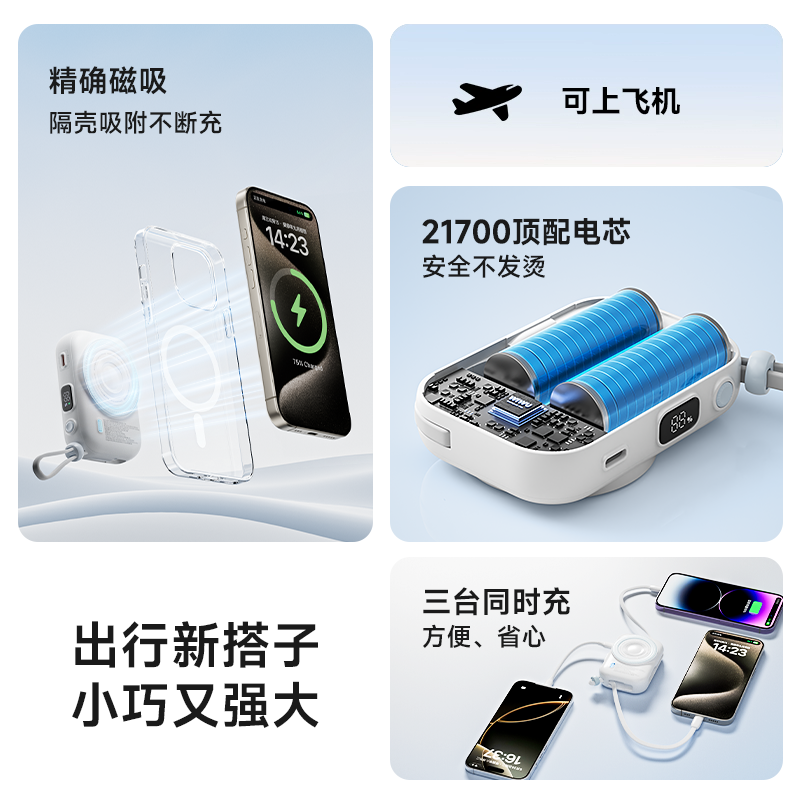 【3C认证可上飞机】新款磁吸充电宝Magsafe小巧迷你无线便携适用苹果iphone17promax自带线耳机女生wiwu为悟