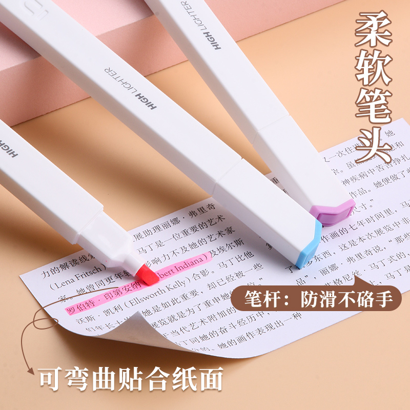 点石三角杆荧光笔12色记号笔简约学生划重点标记笔套装柔色手账笔