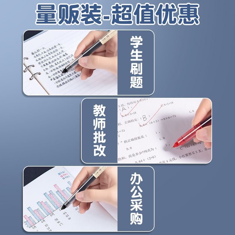 中性笔简菲直液式走珠笔jaofia速干黑笔蓝笔黑色水笔直液笔水性笔蓝色签字笔大容量巨能写学生专用红笔顺滑