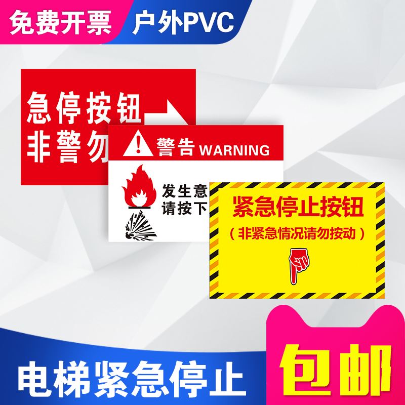 电扶梯紧急停止按钮标识急停按钮开关非警勿动发生意外请按下应急开关消防安全警示牌温馨提示贴纸标示指示牌