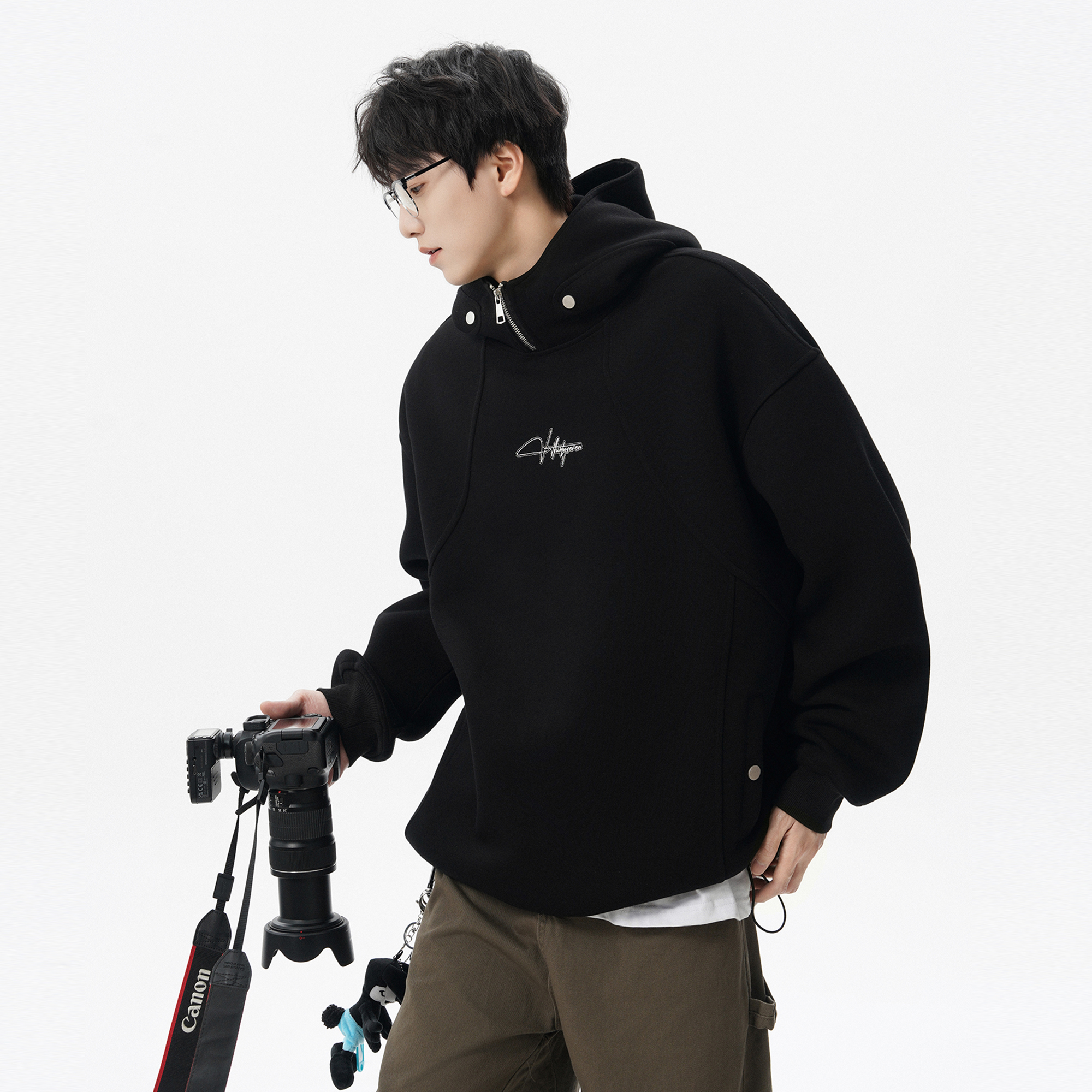 RAPPEYE双杠分割拉链卫衣潮牌男春秋美式百搭宽松运动开衫外套女