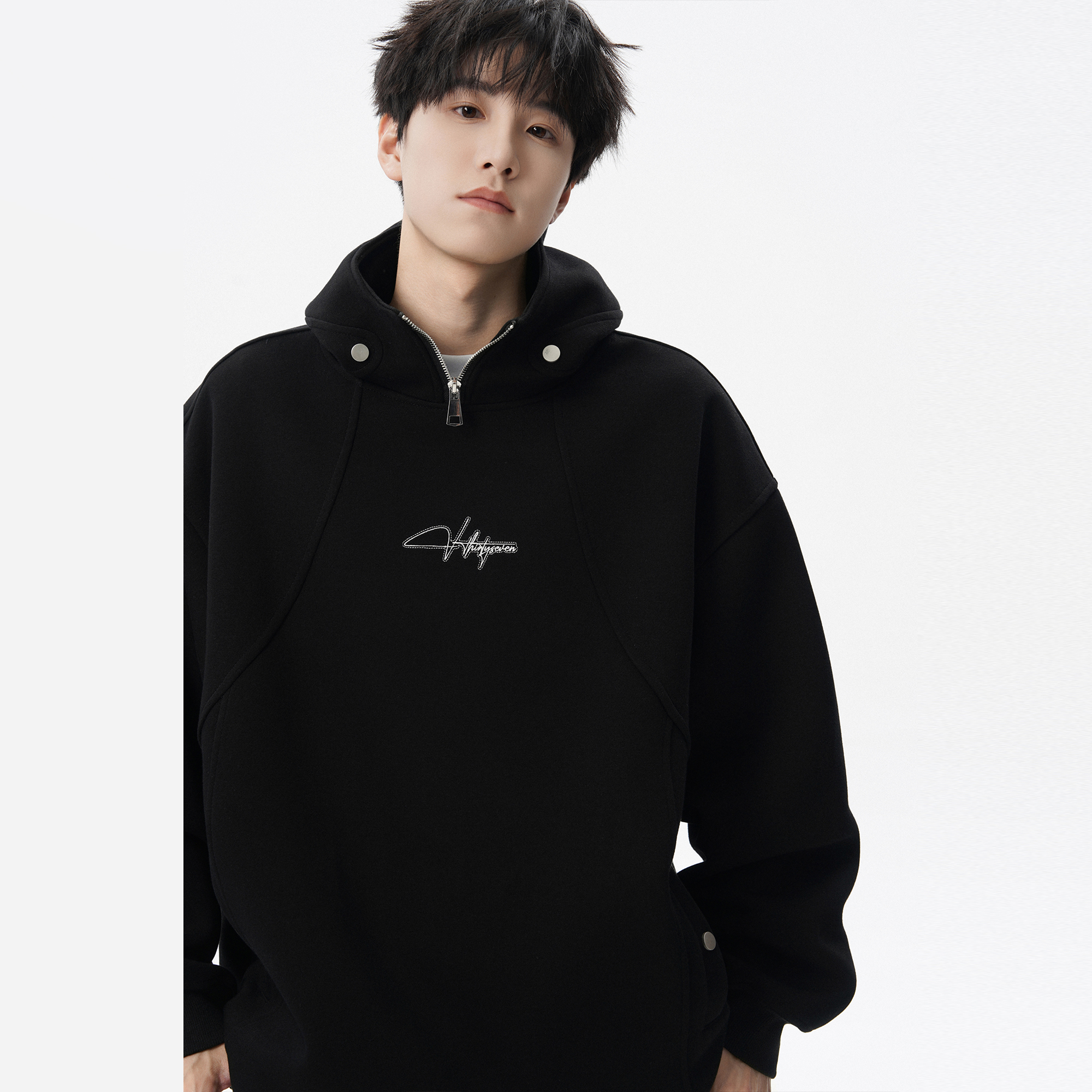 美式重磅半拉链卫衣外套男女2025秋季新款潮牌宽松青少年连帽上衣