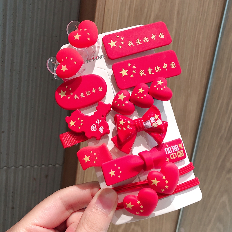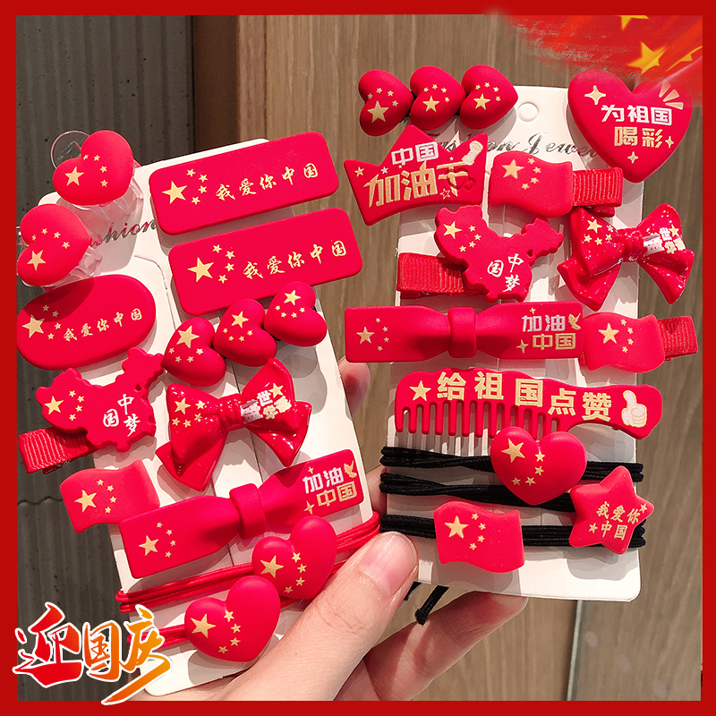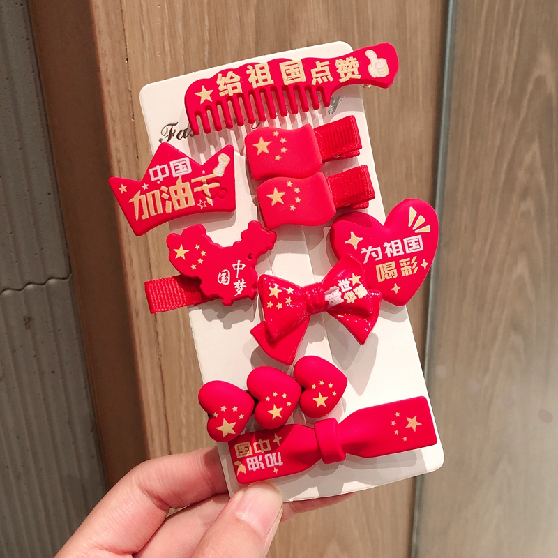 十一国庆儿童发夹女童红色五角星头绳后脑勺不伤发碎发发卡发饰品