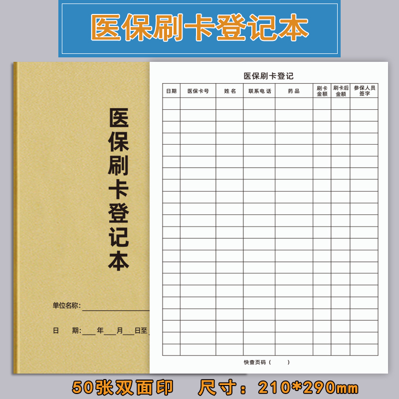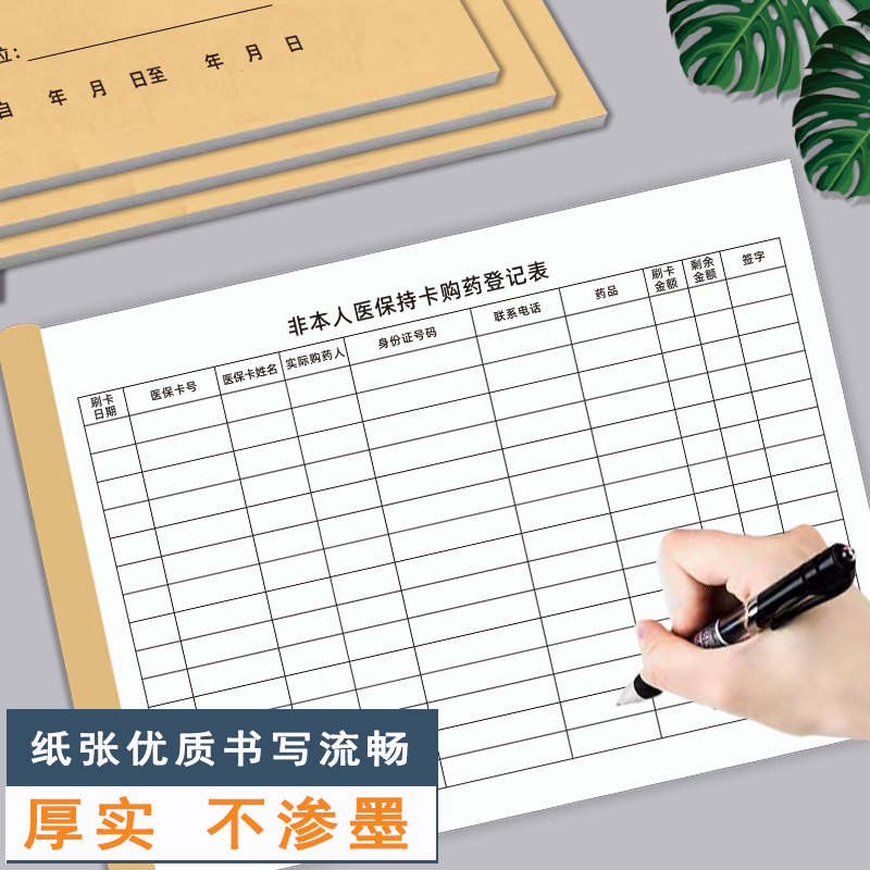 医保刷卡登记本大额医保刷卡记录簿医院医疗机构药房药店非本人医保持卡购药登记表处方药品销售记录表可定制